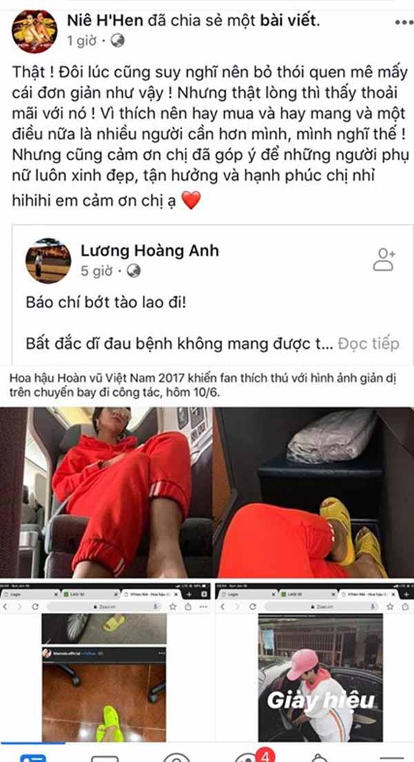 Ồn ào quanh chuyện tài khoản Lương Hoàng Anh, vợ cũ Huy Khánh, chỉ trích H’Hen Niê thiếu văn minh chỉ vì mặc dép tổ ong lên máy bay chưa dừng lại.