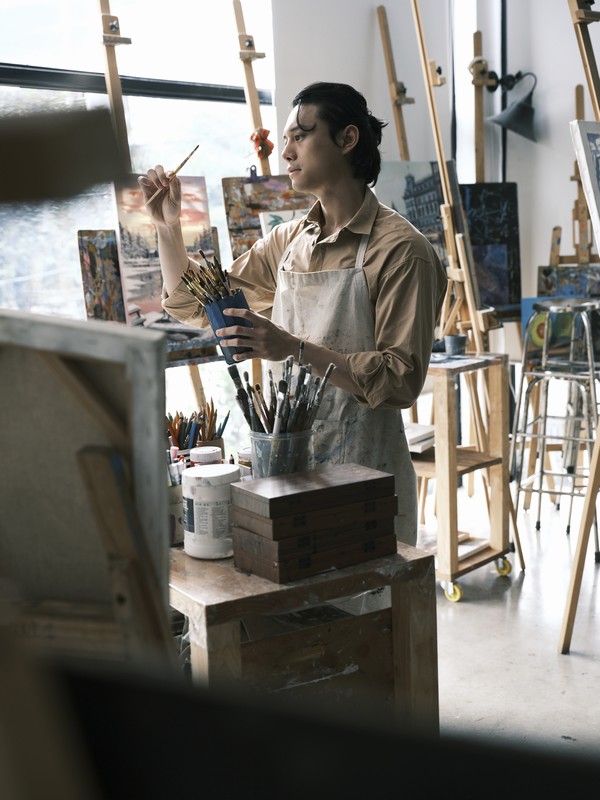 Diễn viên Nguyễn Anh Dũng vừa thực hiện một bộ ảnh nghệ thuật. Khác với hình tượng bảnh bao thường thấy khi xuất hiện trong các sự kiện giải trí và khoảnh khắc khoe body 6 múi đầy nóng bỏng, nam tính dịp đầu năm, anh tạo sự mới mẻ, đa dạng khi hóa chàng họa sĩ đầy lãng tử giữa không gian đậm chất hội họa.