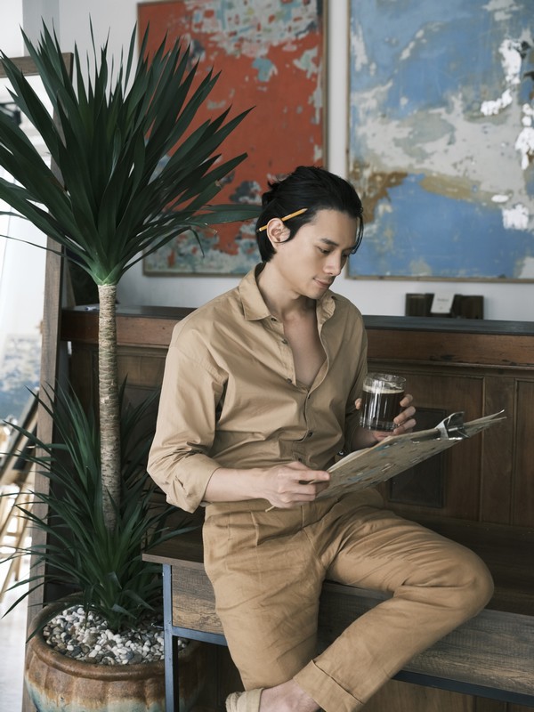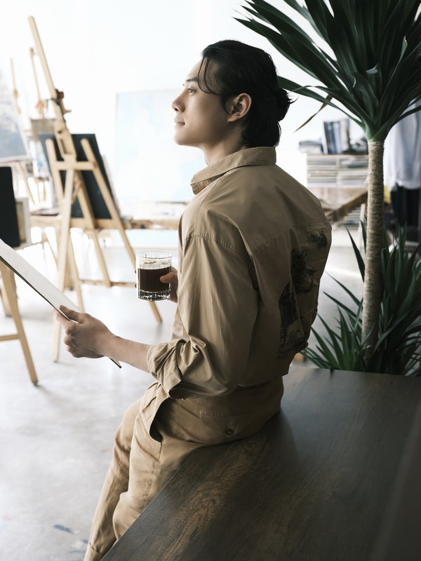 Hình tượng chàng thơ tự vẽ người trong mộng như khắc họa tính cách si tình, sống tình cảm, luôn quan sát và trân trọng cảm xúc của mọi người xung quanh anh. Chỉ diện trang phục đơn giản, thể hiện thần thái thoải mái và tự nhiên nhất, song Nguyễn Anh Dũng vẫn khoe khéo được vẻ điển trai ở mọi góc nhìn.