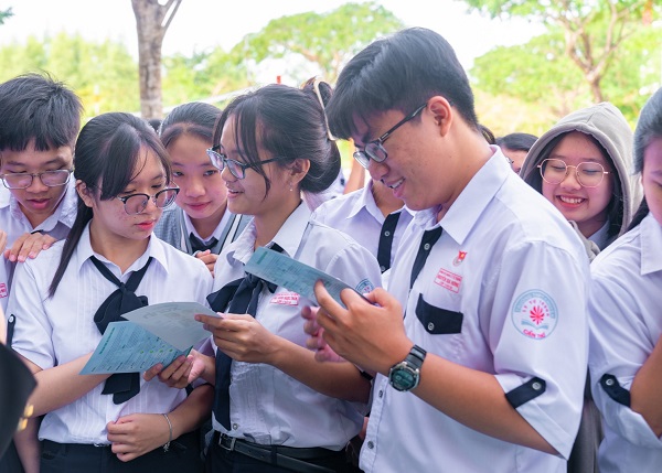 Học sinh Trường THPT Chuyên Lý Tự Trọng (Cần Thơ) tìm hiểu thông tin về cuộc thi “Tiếng nói Xanh”. Ảnh. Tiếng nói Xanh.