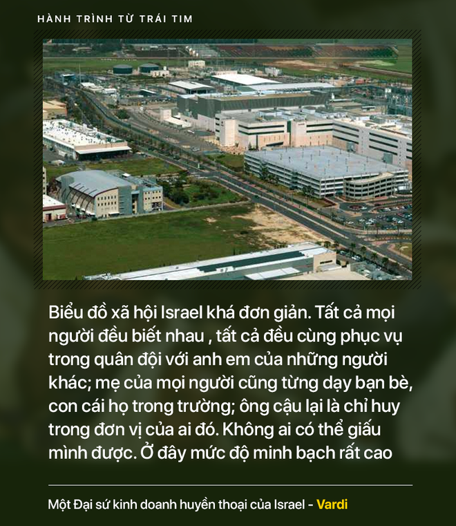 Đồng đội trong quân ngũ đến từ mọi tầng lớp trong xã hội. Quân đội chính là thể chế lấy yếu tố năng lực đặt lên hàng đầu. Và sau này, du đi đâu, làm gì, người Israel cũng luôn đặt yếu tố năng lực lên vị trí đầu tiên trong các mối quan hệ.