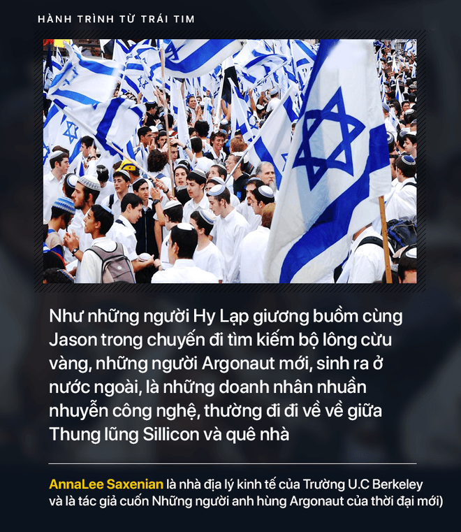 Israel là một quốc gia đi sau nhưng đã trở thành trung tâm toàn cầu của sáng tạo. Theo các chuyên gia nghiên cứu về việc di cư, những người đóng vai trò tiên phong trong hành trình ấy chính là lớp người Argonaut – Những kẻ đã đi ra nước ngoài, đắm chìm trong nền văn hóa của Thung lũng Sillicon để học hỏi.