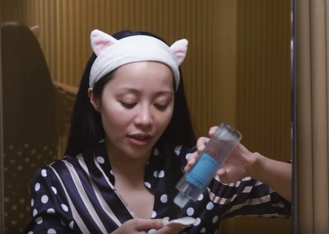 Sau khi làm khô mặt với bông tẩy trang hoặc khăn mặt, Michelle Phan dùng nước cân bằng da, giúp se lỗ chân lông và làm sạch lần nữa lớp trang điểm, bụi bẩn vẫn còn bám trên da mặt.