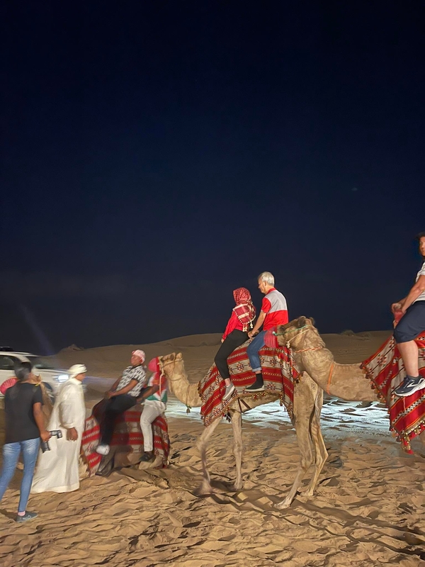 Cô và đoàn đại biểu trải nghiệm cưỡi lạc đà buổi tối ở sa mạc.