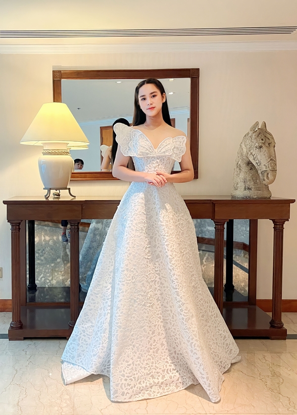 Ngoài ra Bella Vũ còn diện chiếc đầm trắng tinh khôi nằm trong bộ sưu tập sắp ra mắt của NTK Nguyễn Minh Tuấn.