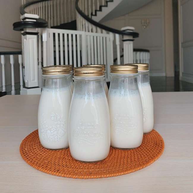 Cô cũng chăm làm sữa hạnh nhân cho cả gia đình thưởng thức. “Sáng 5h30 dậy tập thể dục, làm sữa hạnh nhân, gọi con dậy, đưa con đi học rồi đi làm. Sữa hạnh nhân nhà làm thật tươi ngon”, Tăng Thanh Hà chia sẻ trên trang cá nhân.