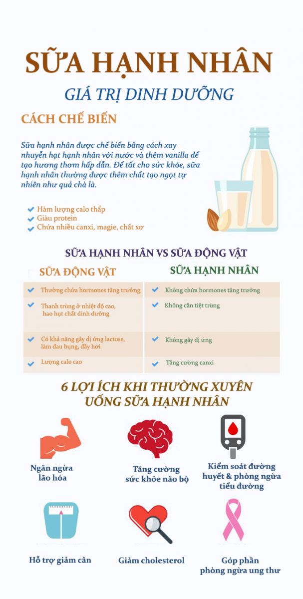Thay thế sữa động vật bằng sữa hạt như sữa hạnh nhân giúp dễ tiêu, nhẹ bụng hơn. Ngoài ra, hàm lượng calo trong sữa thực vật thường thấp, phù hợp với người đang giảm cân, giữ dáng.