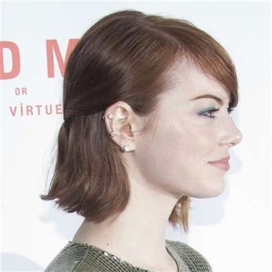 Kiểu tóc tuy đơn giản nhưng lại khiến Emma Stone trở nên cá tính và nổi bật. Khuôn mặt của cô trở nên góc cạnh và quyến rũ hơn nhờ mái tóc gọn gàng này.