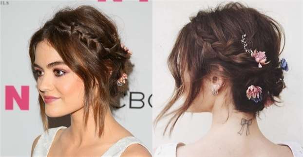 Lucy Hale biến hóa thành một nàng công chúa kiều diễm bước ra từ truyện cổ tích với mái tóc tết dịu dàng từ phần mái. Phần tóc đánh rối làm cô trở nên quyến rũ và gợi cảm hơn.