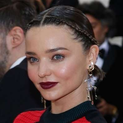 Bím tóc nhỏ từ phần mái của Miranda Kerr khiến cô trông cá tính và nổi bật hơn. Cô tinh tế khi chọn son sẫm màu để trở nên mạnh mẽ và khỏe khoắn hơn.