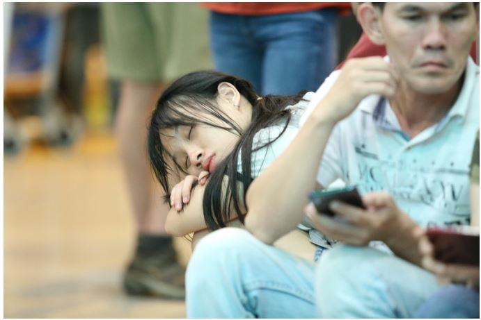 Ngủ gục trong lúc ngồi chờ
