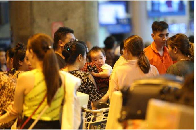 Dù chỉ đón 1-2 người thân nước ngoài về ăn Tết, nhưng đa số thân nhân đi cả gia đình, từ 5 – 6 thành viên, khiến khu vực này luôn nghẹt người, dù ngày hay đêm.