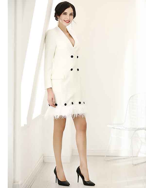 Mang những đặc trưng của sự thanh lịch, sang trọng của dòng trang phục vest, vì thế blazer dress là kiểu váy rất dễ sử dụng đến văn phòng.