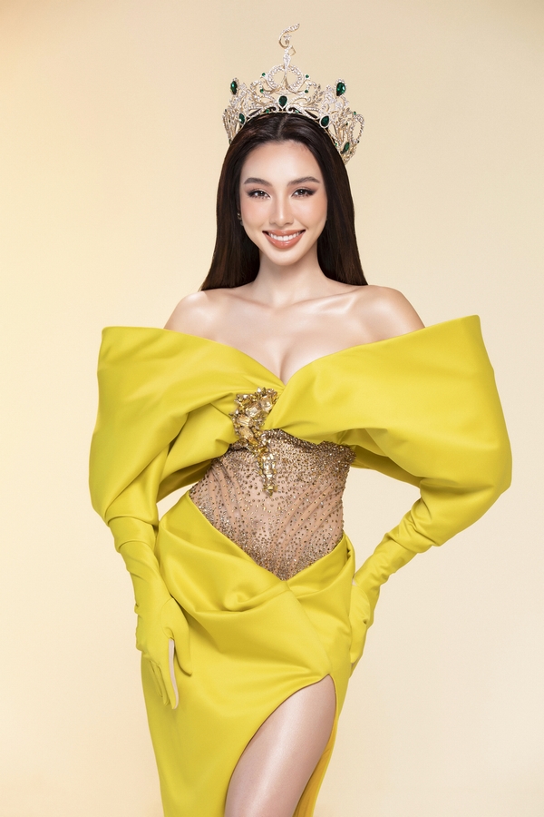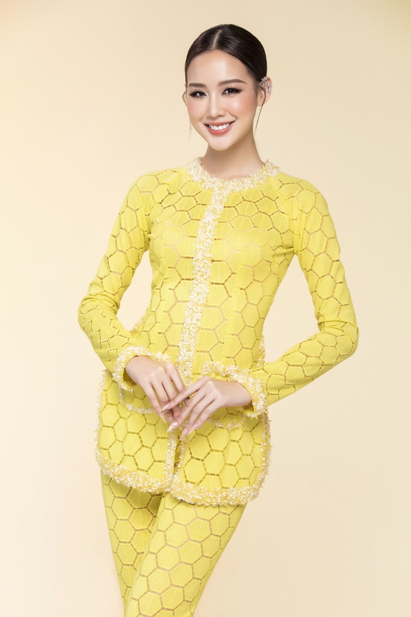 Nàng hậu tỏa sáng rực rỡ với gam màu vàng chủ đạo giúp điểm thêm cho nét đẹp kiêu sa của cô nàng.