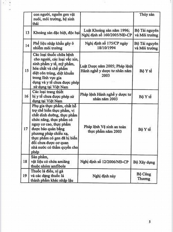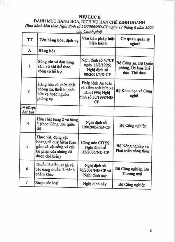 Dưới đây là những hàng hóa trong Phụ lục I (Phần A) và Phụ lục II (Phần A) nêu trên chỉ được vận chuyển khi Thủ tướng Chính phủ cho phép: