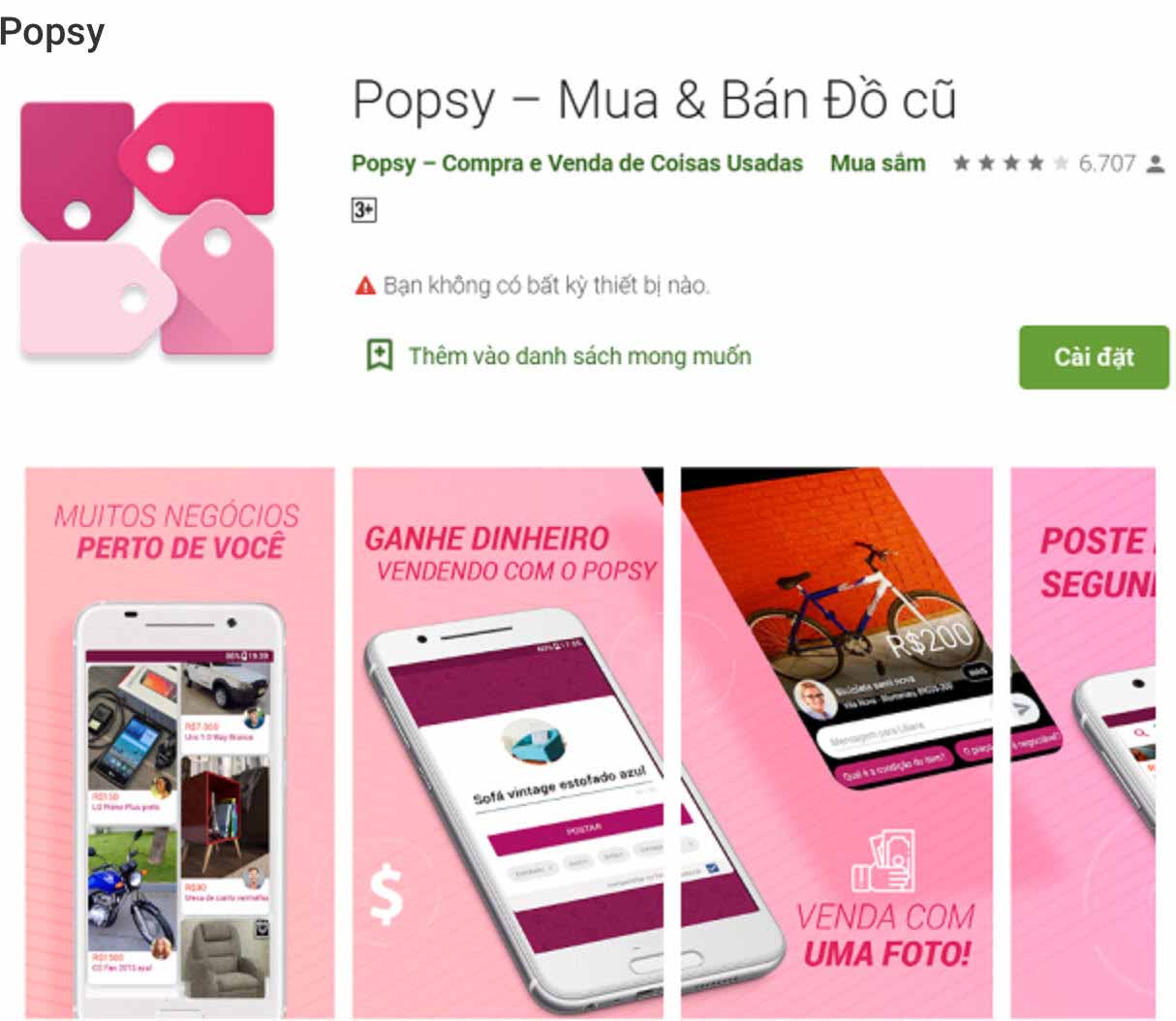 Popsy là ứng dụng mua bán đồ cũ hoàn toàn miễn phí. Giống như những app thanh lý, mua bán đồ cũ khác, Popsy không chỉ giúp bạn bán đồ cũ nhanh chóng mà còn giúp tìm được những món đồ với giá tốt nhất và gần bạn nhất.