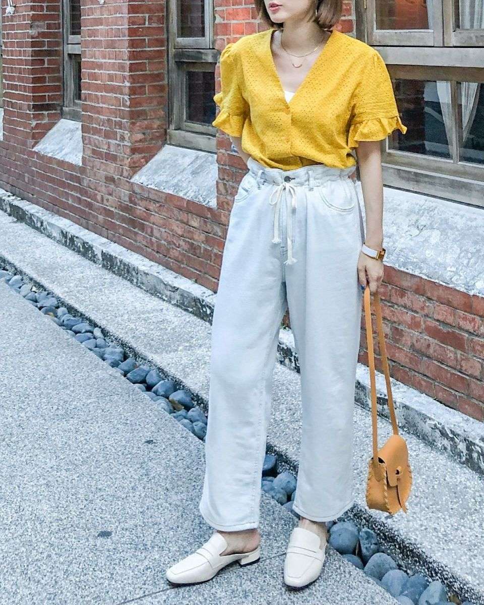 Áo blouse hay sơ mi luôn là món đồ quen thuộc nhất với mọi quý cô văn phòng. Item đậm chất công sở này khá dễ diện, có thể mix cùng quần âu đứng dáng, quần khaki, chân váy… nhưng có lẽ thoải mái nhất chính là khi các nàng diện cùng những chiếc quần vải dáng suông rộng. Quần dáng suông không chỉ thanh lịch, nữ tính mà còn giúp giấu khéo đôi chân không được thon gọn lắm của các nàng; đặc biệt là khi sơ vin gọn gàng thì chi tiết cạp cao sẽ giúp kéo dài chân đáng kể. Ngoài những chiếc áo blouse tay ngắn với loạt kiểu dáng hot hit mùa hè này thì các nàng đừng bỏ qua những chiếc áo blouse/sơ mi tay dài cực duyên dáng nhé.