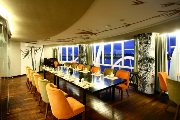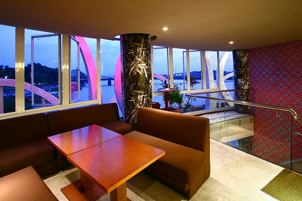 Công trình có 3 tầng, 1 trệt 2 lầu. Tất cả các tầng, các hướng đều mở ra với sông Hương. Nội thất được thiết kế sang trọng, hiện đại, ấm áp. Có nhiều không gian, nhiều vị trí khác nhau, đa dạng phù hợp cho những nhu cầu của thực khách. Lầu 2 cũng là sân thượng, một mặt bằng rộng, không có mái, không có vách ngăn – là nơi ngắm cảnh lý tưởng. Ngồi đây như hòa mình vào thiên nhiên, nghe được cả tiếng sóng du dương của dòng sông thơ mộng.