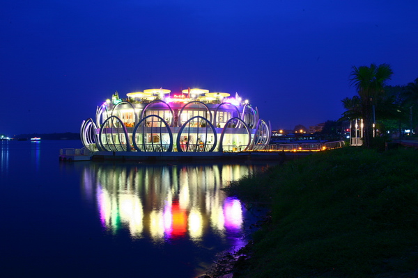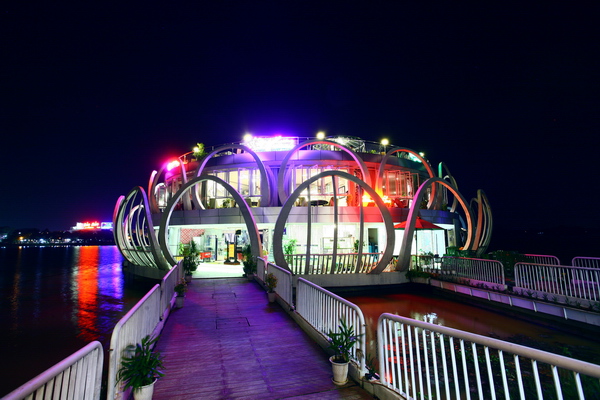 Bằng kết cấu thép, công trình nhà hàng – cà phê này được tạo hình theo dáng bông sen – một hình ảnh gợi nhắc xứ Huế, với đường nét thanh nhã, không gian mở ra với dòng sông Hương; kiến trúc này thực sự đã hòa nhập được với cảnh quan. Công trình nhỏ vừa đủ để không lấn át không gian, nhưng vẫn đảm đương chức năng, vai trò cần thiết của một nhà hàng.