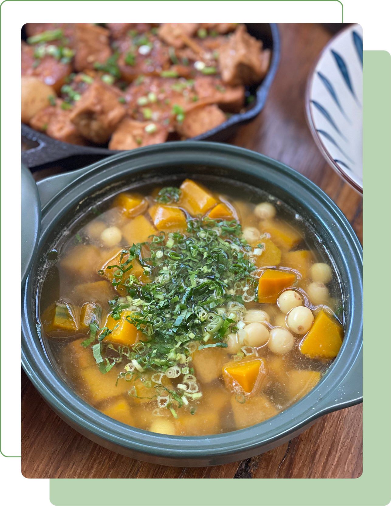Mỗi nơi mỗi khí trời, mỗi người mỗi thể trạng. Mâm cơm hôm nay mình nấu là một ví dụ nho nhỏ cho một bữa chay cân bằng với mình nhất ở hiện tại. Mỗi món định lượng sẽ đủ cho 4 người ăn: