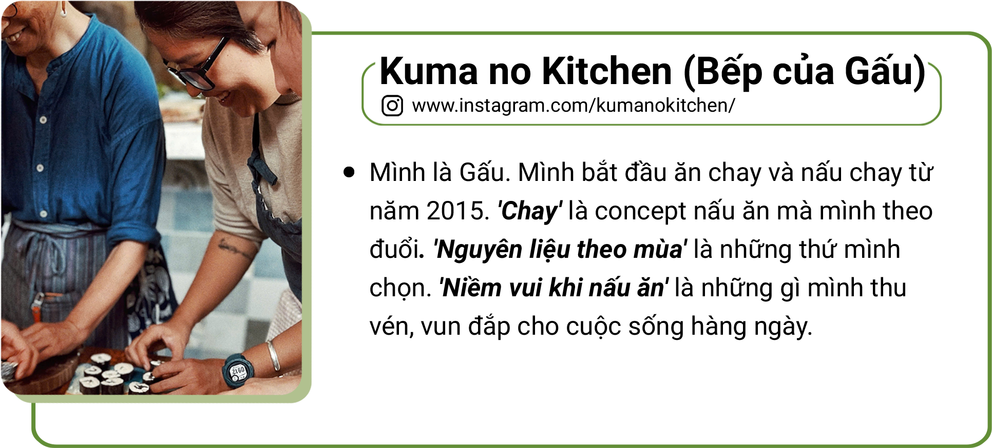 Dù có là món gì mình cũng sẽ nấu những món mình thích nhất. Vì thích thì mình sẽ có cảm hứng để nấu và tự tin hơn khi đứng trong bếp. Người ăn từ đó cũng cảm nhận được niềm vui, sự hứng khởi của chính mình. Với một bữa cơm chay có lẽ mình sẽ lưu ý hơn một chút từ khâu đi chợ, chọn lựa thực phẩm để cân bằng hơn cho người ăn. Mình chọn đi chợ từ nguồn thực phẩm đáng tin cậy, xuất xứ rõ ràng, ngay tại địa phương và theo mùa.