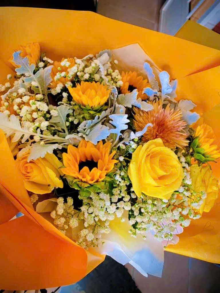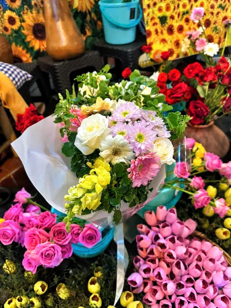 Bó hoa xinh xắn, dễ thương do Mỹ Đan gói - Ảnh: NVCC