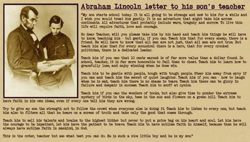 Bức thư gửi thầy hiệu trưởng nơi con trai cố Tổng thống Abraham Lincoln đang theo học, được viết ra từ gần 200 năm trước, nhưng đến nay vẫn giữ nguyên tính “thời sự” và mang lại giá trị quý báu cho chúng ta.