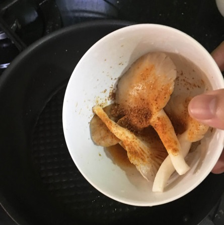 Nấm bào ngư ướp bột nghệ và xào thơm với bơ.