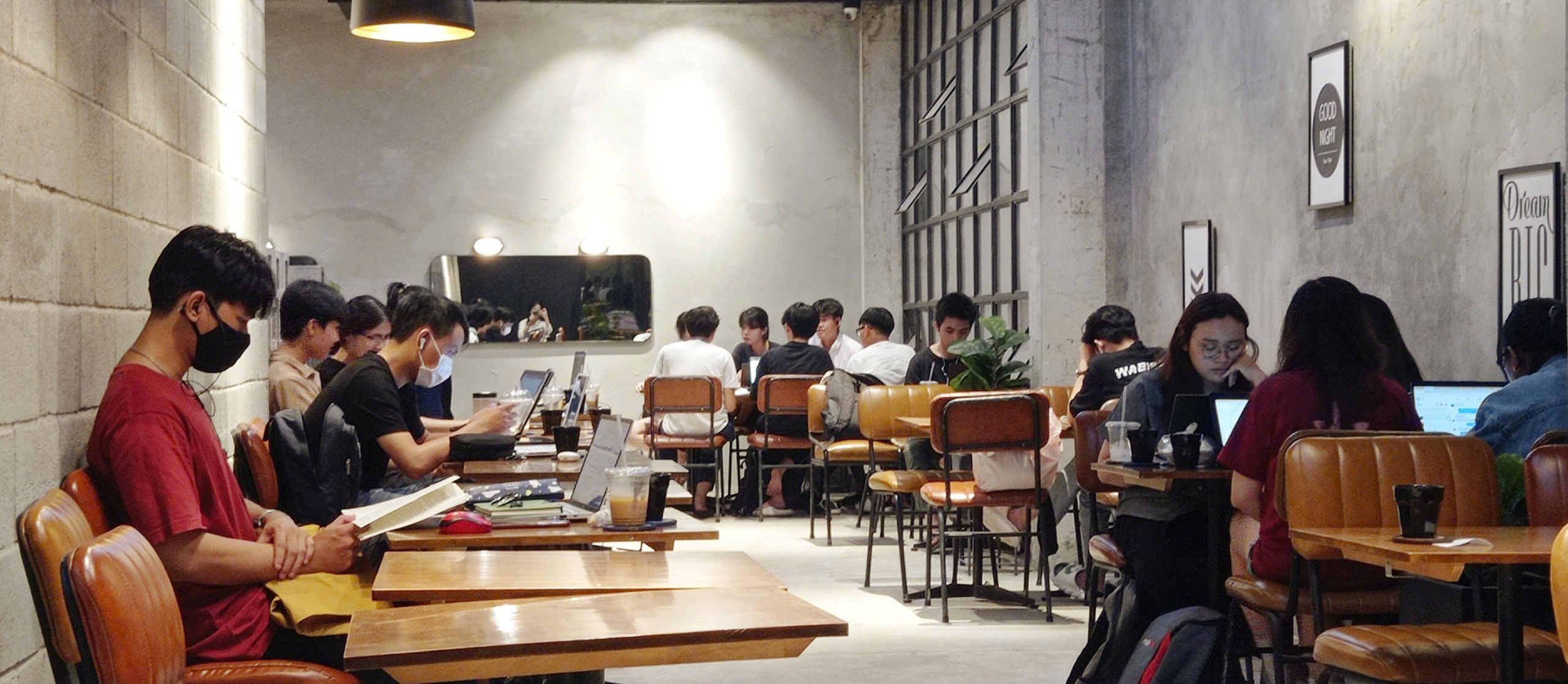 Nhiều bạn trẻ cho hay họ thường có mặt ở quán cà phê 24h từ sớm để học bài, làm bài tập. Đây cũng là địa điểm ưu tiên cho các buổi họp nhóm, nơi mọi người cùng nhau bàn bạc, lên ý tưởng cho bài luận, bài thuyết trình. Thay vì làm việc trong những căn phòng trọ bí bách, chật chội hay trong không gian thư viện khép kín dễ tạo cảm giác cô đơn, việc tìm kiếm một môi trường mới giúp họ cảm thấy hào hứng, tự do và thoải mái hơn. Đồng thời, sự kết nối xã hội, giao lưu với mọi người xung quanh cũng góp phần khơi nguồn cảm hứng sáng tạo trong học tập và công việc.