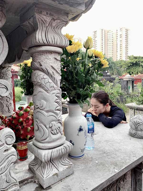 Ca sĩ Lệ Quyên nghẹn ngào khóc bên mộ bố