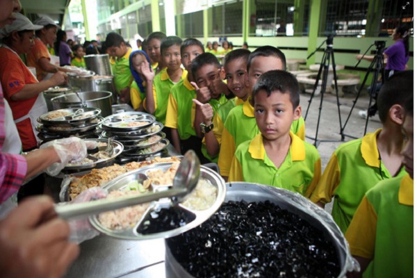 Với mục tiêu mang đến cho các em học sinh bữa ăn tại trường đầy đủ chất dinh dưỡng, từ năm 1993 chính phủ Thái Lan đã thực hiện chương trình trợ cấp bữa ăn trưa cho các em học sinh. Mỗi em học sinh sẽ được Nhà nước hỗ trợ 20 baht (khoảng tầm 14.000 VNĐ) cho mỗi bữa ăn tại trường. Ngoài ra, phụ huynh học sinh cũng có thể đóng góp thêm tiền để cải thiện chất lượng bữa ăn cho các em.