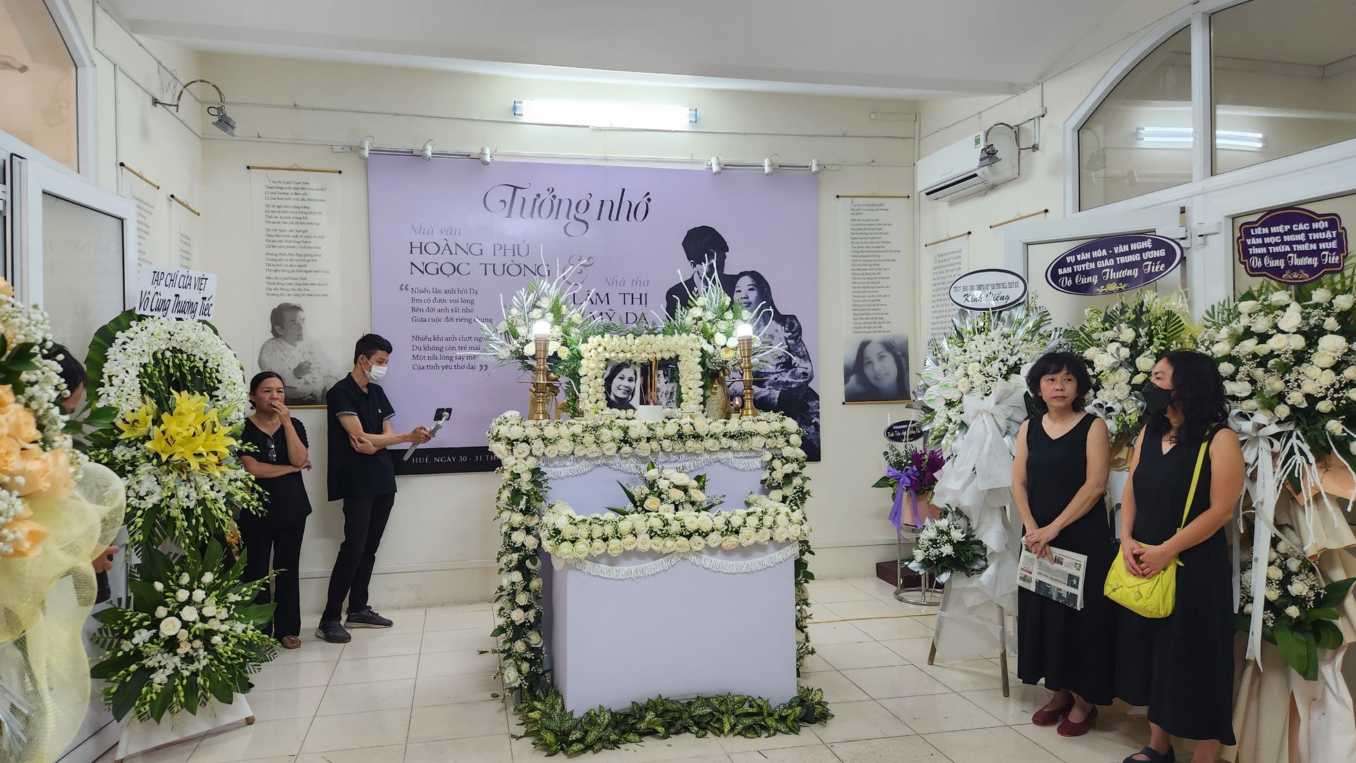 Nhiều văn nghệ sĩ có mặt tại lễ tưởng niệm nhà văn Hoàng Phủ Ngọc Tường, nhà thơ Lâm Thị Mỹ Dạ.