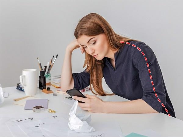 Đã có nghiên cứu về việc sử dụng điện thoại và ảnh hưởng của nó đến cột sống. Theo công bố trên tạp chí Surgical Technology International cho biết, khi ta đọc một tin nhắn văn bản đơn giản, cột sống có thể tăng thêm áp lực lên đến 20kg. Việc dùng điện thoại hàng ngày khiến đường cong tự nhiên của cột sống dần thay đổi, và thời gian dài có thể dẫn đến cong vẹo cột sống nghiêm trọng mà ta không ngờ tới.