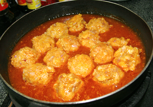 – Thoa ít dầu vào găng tay, vo xíu mại thành những viên tròn vừa ăn.