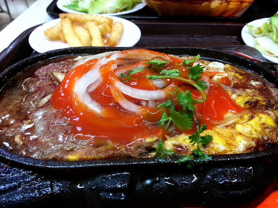 Bạn có thể rắc thêm vài cọng ngò gai và tiêu lên cho món ăn thêm đậm đà. Khi ăn món bò bít tết với trứng ốp la này, bạn trộn đều trứng, thịt bò, pate lên và ăn kèm với khoai tây chiên, bánh mì cùng dưa leo, rau xà lách chua ngọt là tuyệt nhất.