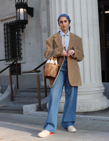 Kết hợp quần jean ống rộng cùng áo blazer dáng rộng tạo nên bộ trang phục trông sang trọng tinh tế mà vẫn thoải mái.