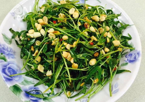 Hỗn hợp nước dùng nộm rau gồm: 1 thìa canh nước mắm, đường, nước lọc và nước cốt 2 quả chanh. Cho thêm vài tép tỏi bằm, ớt tươi thái sợi, lạc rang giã nhỏ, mè (vừng) rang chín. Cho rau vào âu đổ hỗn hợp nước mắm vừa pha rồi trộn đều, đợi rau thấm gia vị là ăn xổi cùng cơm.
