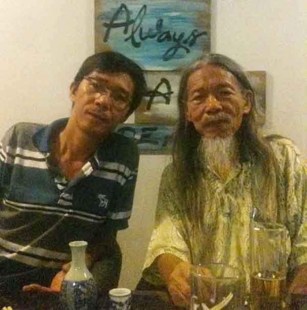 Thi sĩ Lê Quý Nghi và Dịch giả Nguyễn Tiến Văn đang đối ẩm.