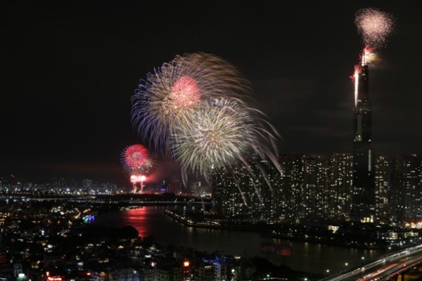 Các vị trí bắn pháo hoa tầm cao gồm đầu đường Hầm sông Sài Gòn (phía quận 2) và tòa nhà Landmark trong khu đô thị Vinhomes Center Park (quận Bình Thạnh).