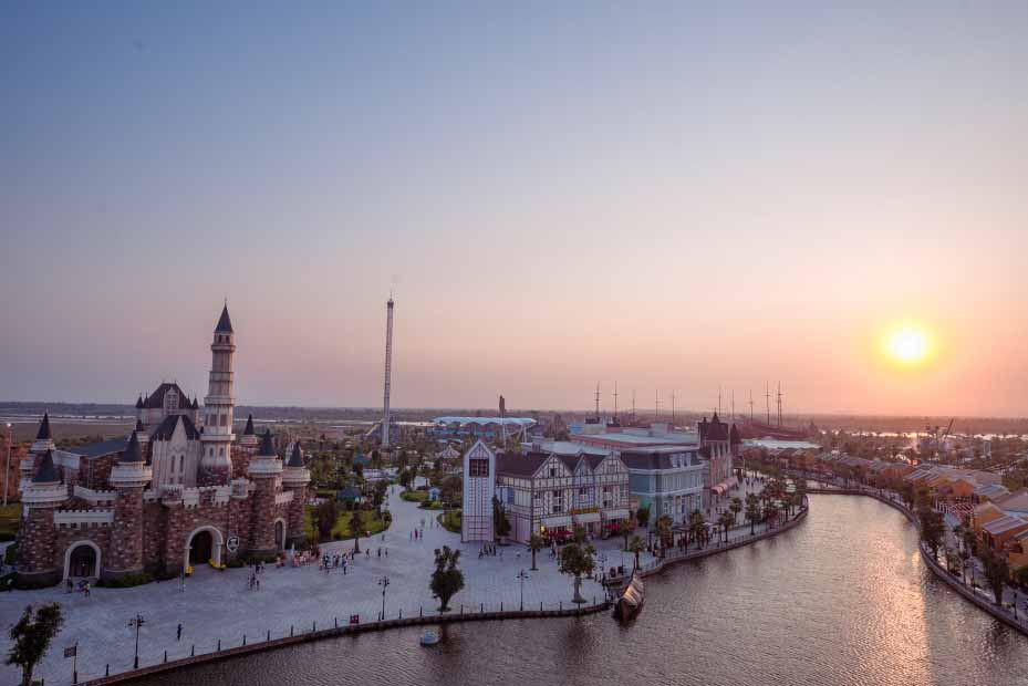 Nổi bật giữa quần thể là khu vui chơi giải trí Vinpearl Land Nam Hội An với diện mạo tạo nhận diện ngay lập tức với dãy phố Đông mô phỏng những tòa nhà vàng rực của phố cổ Hội An. Bờ bên kia phố Đông nghiêng mình trên dòng sông với kiến trúc đặc thù của thành Venice hay kiến trúc Pháp cổ kính…