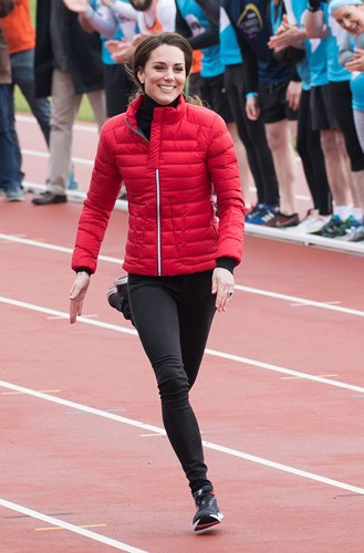 Bộ trang phục thể thao với quần jegging của Zara, giày New Balance, áo len cao cổ của Iris & Ink và đôi bông tai Asprey 167 mà Kate diện trong sự kiện chạy marathon ở London có giá 5,922 USD.