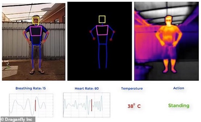 Drone (máy bay không người lái) của Draganfly sử dụng hệ thống thị giác máy tính, được trang bị máy ảnh và cảm biến chuyên dụng để theo dõi thân nhiệt, nhịp tim và hô hấp nhằm phát hiện những người có các triệu chứng Covid-19 như ho, hắt hơi. Thiết bị này sử dụng các thuật toán đặc biệt để có thể xác định người nghi nhiễm từ khoảng cách gần 60m.