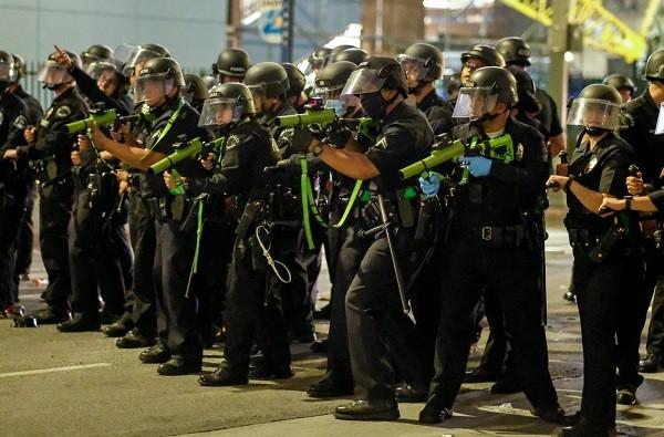 Cảnh sát Los Angeles sử dụng đạn cao su – Ảnh: The New York Times