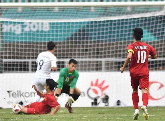– Phút 28: Olympic VIỆT NAM 0-2 Olympic HÀN QUỐC. Một kịch bản quen thuộc, Son Heung Min kiến tạo còn Hwang Ui Jo chạy chỗ thông minh, đánh bại Tiến Dũng trong pha đối mặt.
