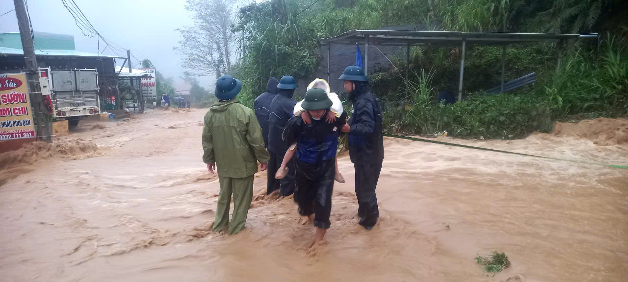 Sáng ngày 29.10, mưa lớn tiếp tục khiến nhiều tuyến đường ngập sâu, nước chảy trên mặt đường như thác đổ. Chính quyền xã khẩn trương tiếp tục di dời người dân khỏi vùng nguy hiểm.