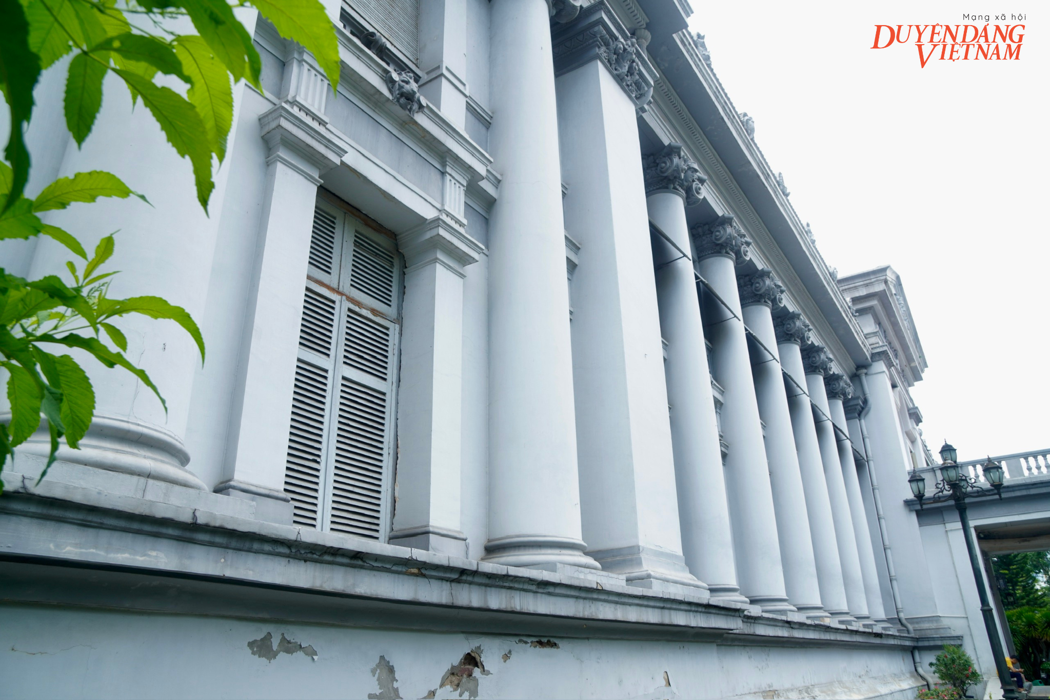 Điểm đặc biệt của công trình là sự giao thoa giữa thiết kế phương Đông và phương Tây. Nếu mặt tiền thể hiện rõ tinh thần kiến trúc phương Tây với nhiều chi tiết phù điêu tinh xảo – trong đó có cả các biểu tượng thần thoại Hy Lạp – thì phần mái lại gợi lên đường nét Á Đông với độ uốn cong nhẹ nhàng, đậm bản sắc phương Đông.