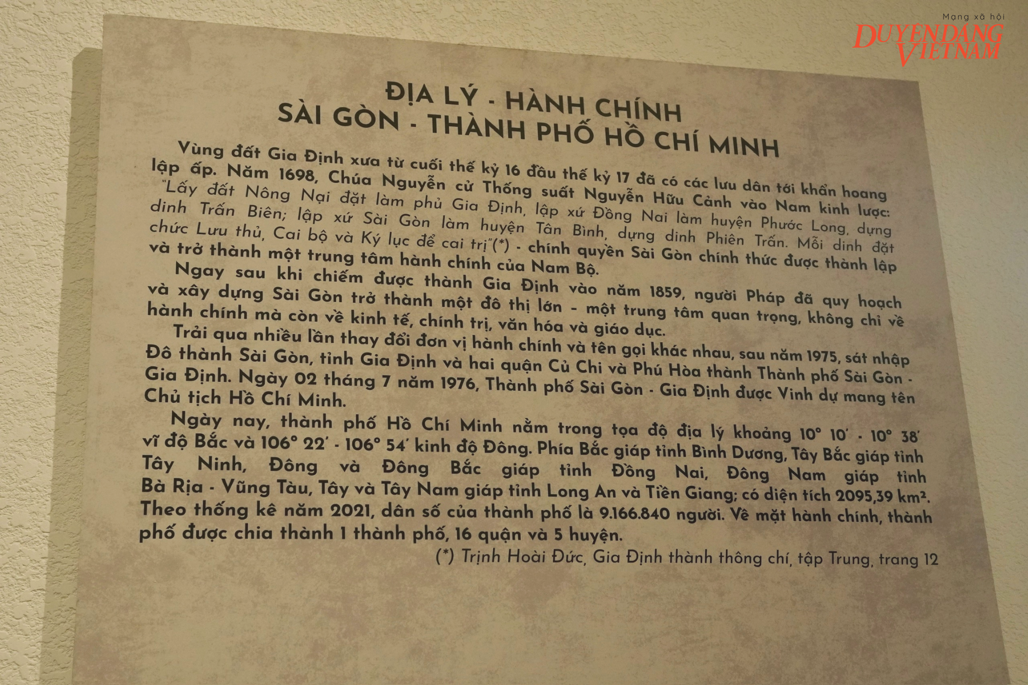 Bên trong Phòng Địa lý và Hành chính, các dấu mốc lịch sử quan trọng và những câu chuyện ly kỳ về vùng đất Sài Gòn đều được lưu giữ và trưng bày.
