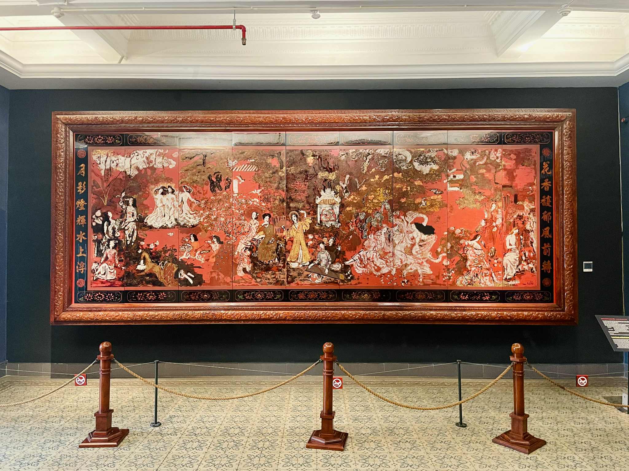 Đặc biệt, dù có quan tâm đến mỹ thuật nước nhà hay không thì chắc hẳn ai cũng từng nghe qua tác phẩm sơn mài “Vườn xuân Trung Nam Bắc” của hoạ sĩ Nguyễn Gia Trí, được công nhận là Bảo vật quốc gia. Ngoài ra còn một tác phẩm khác là “Thanh niên Thành Đồng” của hoạ sĩ Nguyễn Sáng. Cả hai Bảo vật quốc gia này đều được trưng bày tại Bảo tàng, và là điểm sáng được quan tâm nhất ở tầng 1 của Bảo tàng.
