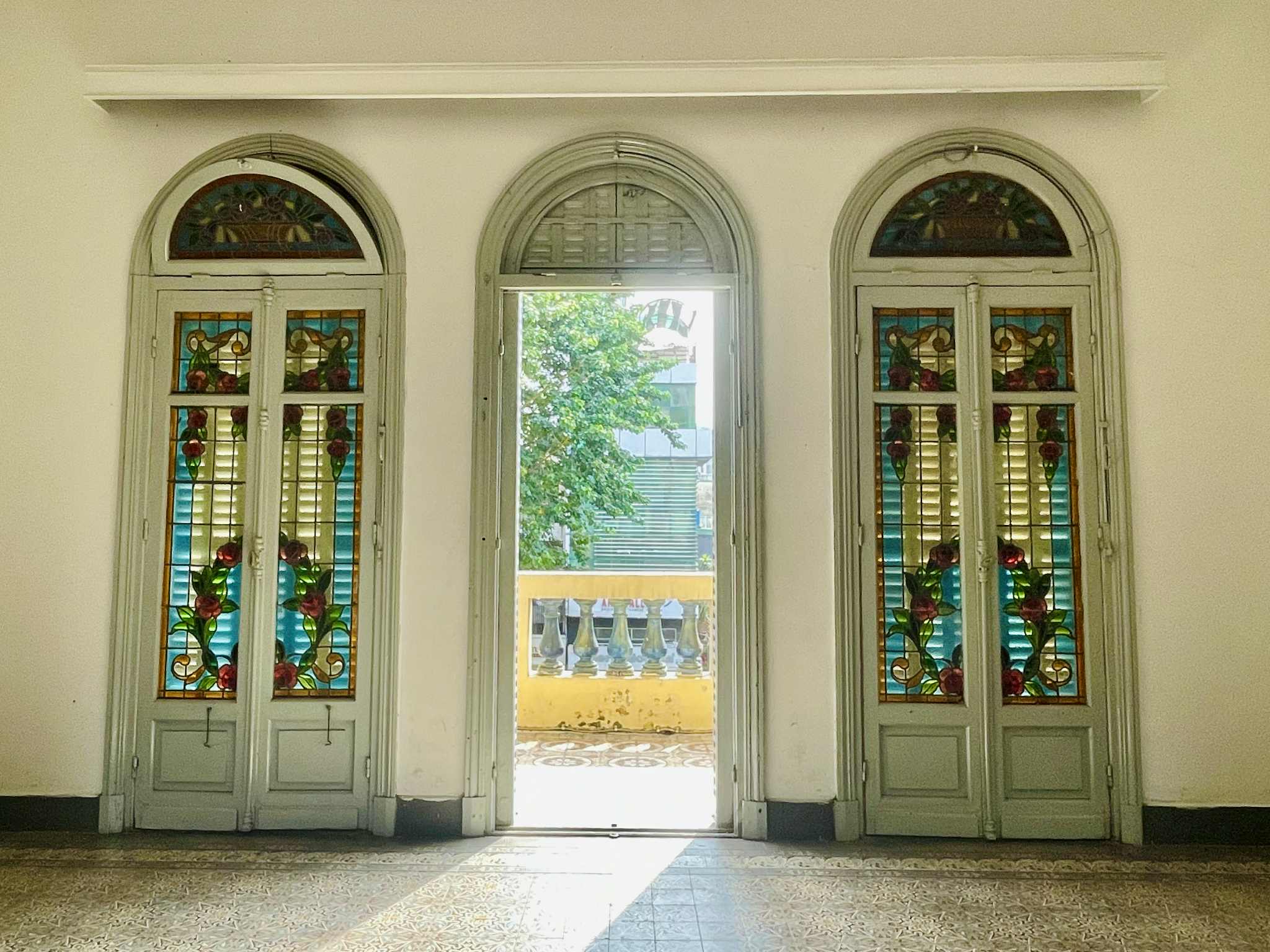 Ô cửa kính màu rợp nắng sớm mang đậm chất cổ điển