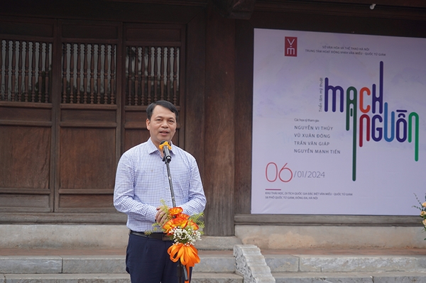 Chiều 06/01/2024, tại di tích Quốc gia đặc biệt Văn Miếu – Quốc Tử Giám Hà Nội đã diễn ra lễ khai mạc triển lãm “Mạch nguồn”. Triển lãm gồm 19 tác phẩm sắp đặt và tranh của bốn tác giả Nguyễn Vi Thủy, Vũ Xuân Đông, Trần Văn Giáp và Nguyễn Mạnh Tiến.